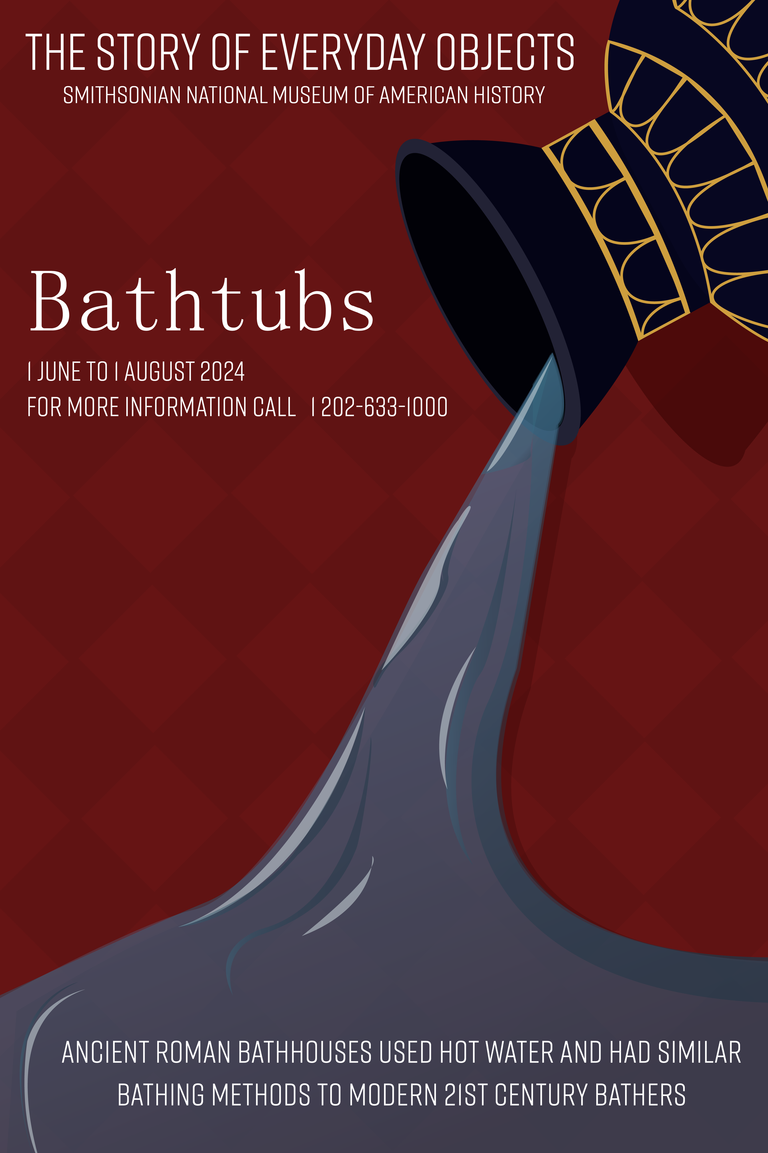 This is an infographic for a bathtub research and design project. It briefly describes details on Ancient Roman bathhouses as a poster to advertise for an exhibit on Everyday Objects in the Smithsonian.