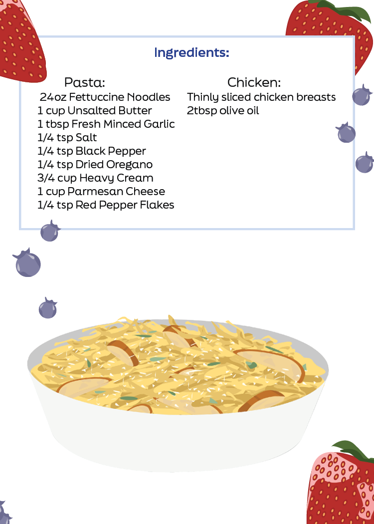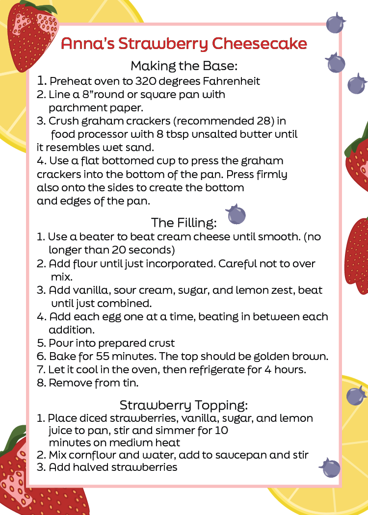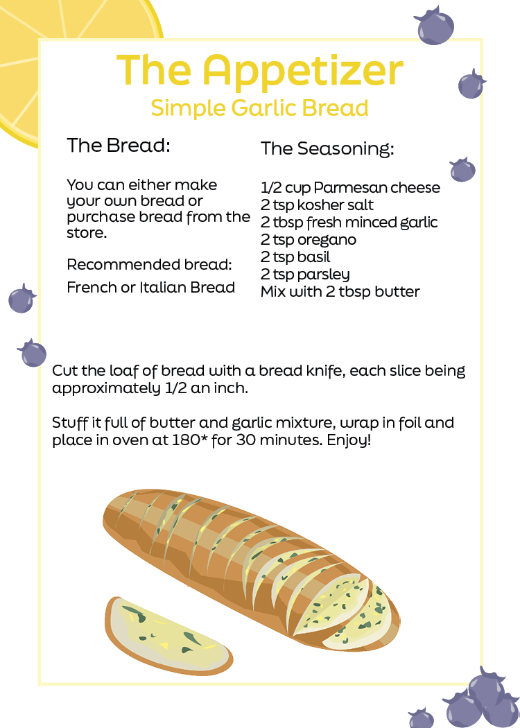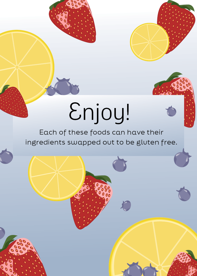 This was a food booklet which had to include 4 recipes; an appetizer, a side, a drink, and a dessert. In order to do this I had to create and adjust previous recipes I knew as well as create all of the visual elements. This is included to showcase my ability to create a legible and visually appealing layout.